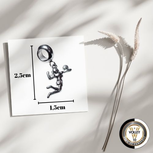 Acabamento polido espelhado, composto por uma atleta num super ataque de voleibol. Versátil e durável, ideal para pulseiras e colares de berloques universais, perfeito para quem vive a paixão pelo voleibol no dia a dia.