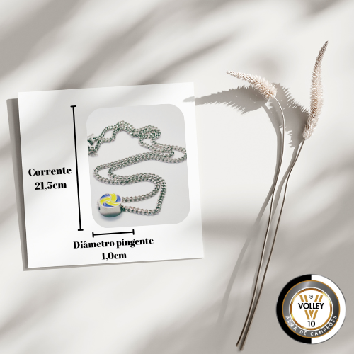 Celebre a paixão pelo voleibol com este colar minimalista e sofisticado. O pingente em formato de bola de voleibol, confeccionado em prata polida com detalhes em esmalte azul e amarelo, captura a essência do esporte em uma peça elegante e versátil.