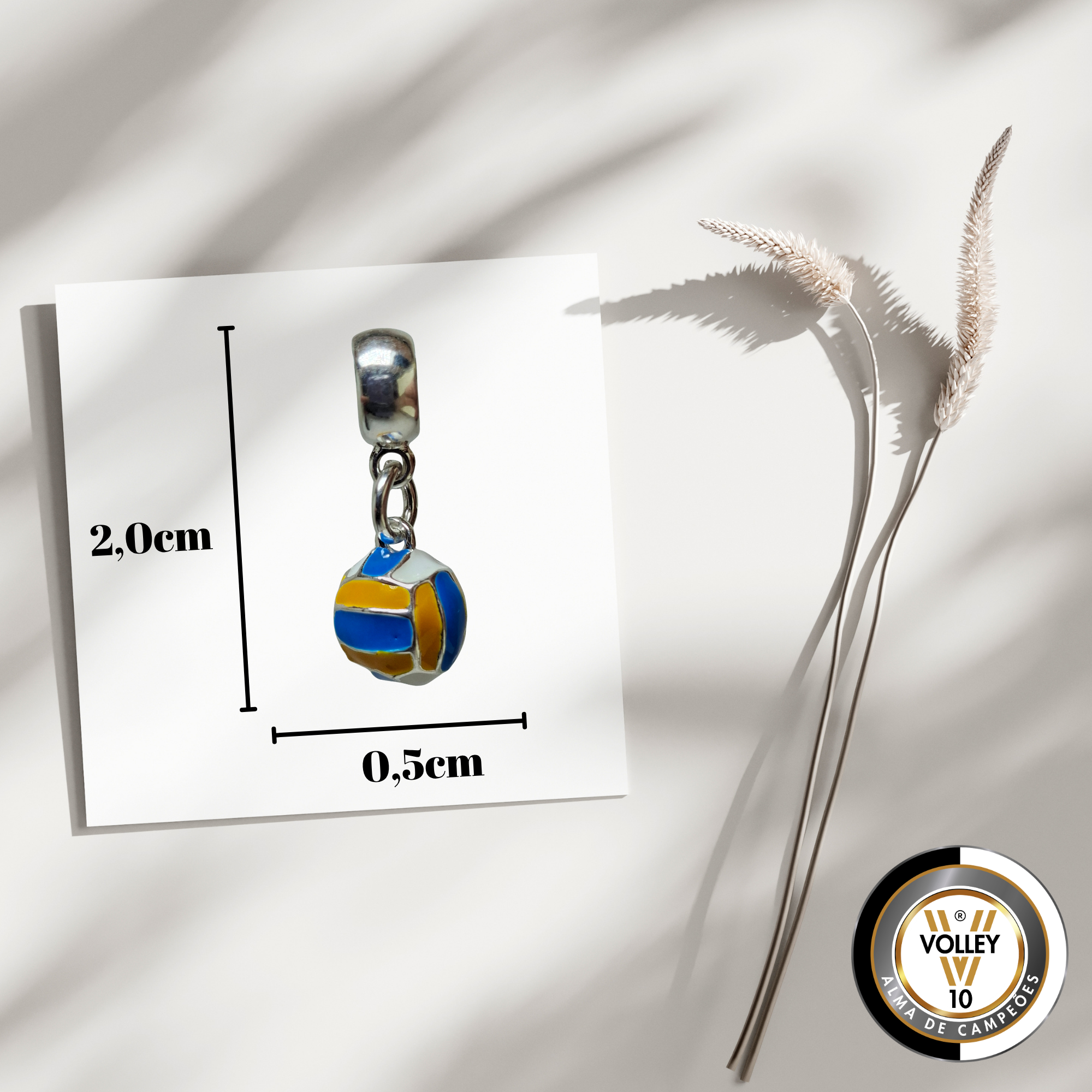 Exiba sua paixão pelo vôlei com este berloque banhado em prata de altíssimo padrão.